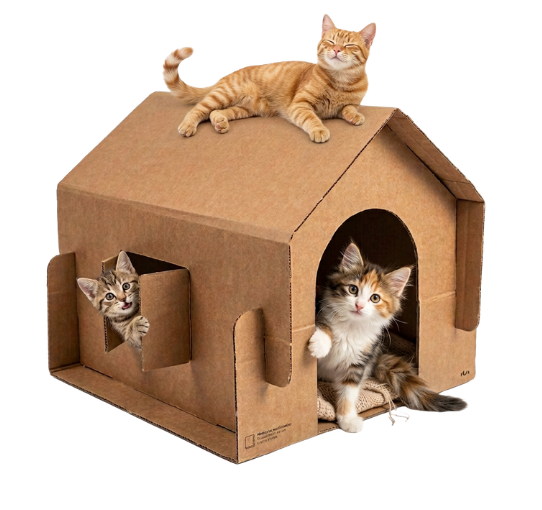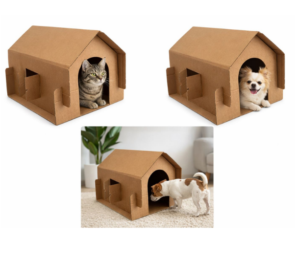 Casa Pet de Papelão Embalai para Gatos e Cães Pequenos – Casinha Ecológica de Papelão Ondulado Reforçado, Design Moderno, Confortável e Fácil de Montar